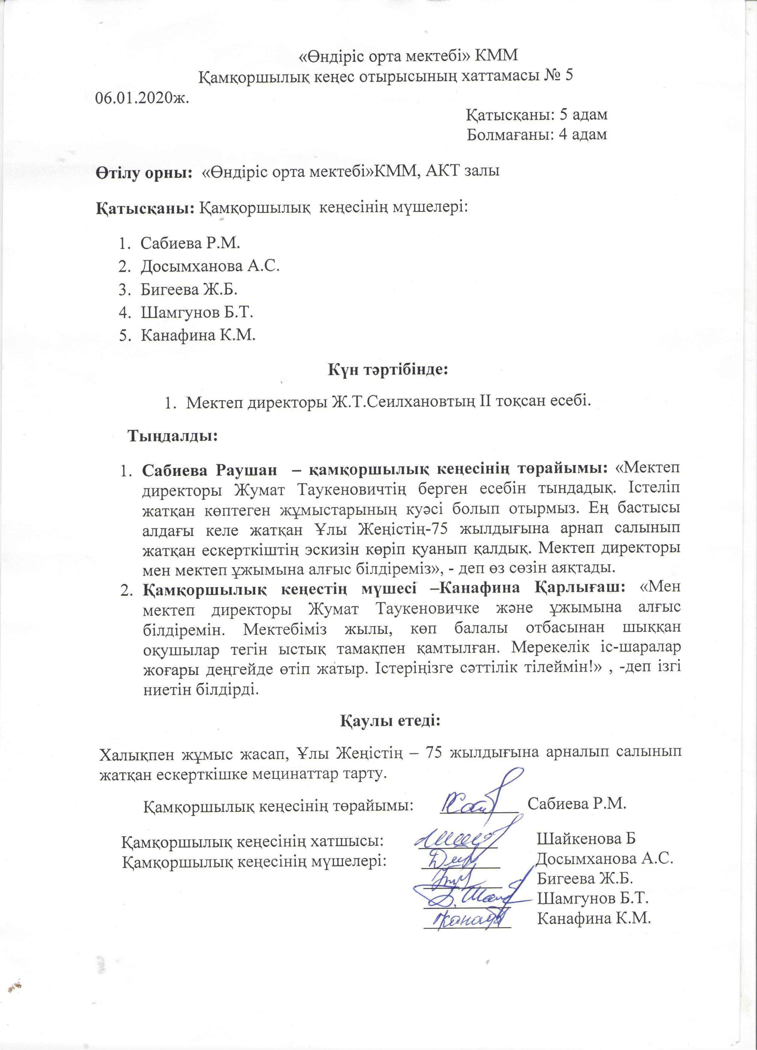 Қамқоршылық кеңес отырысының хаттамасы №5