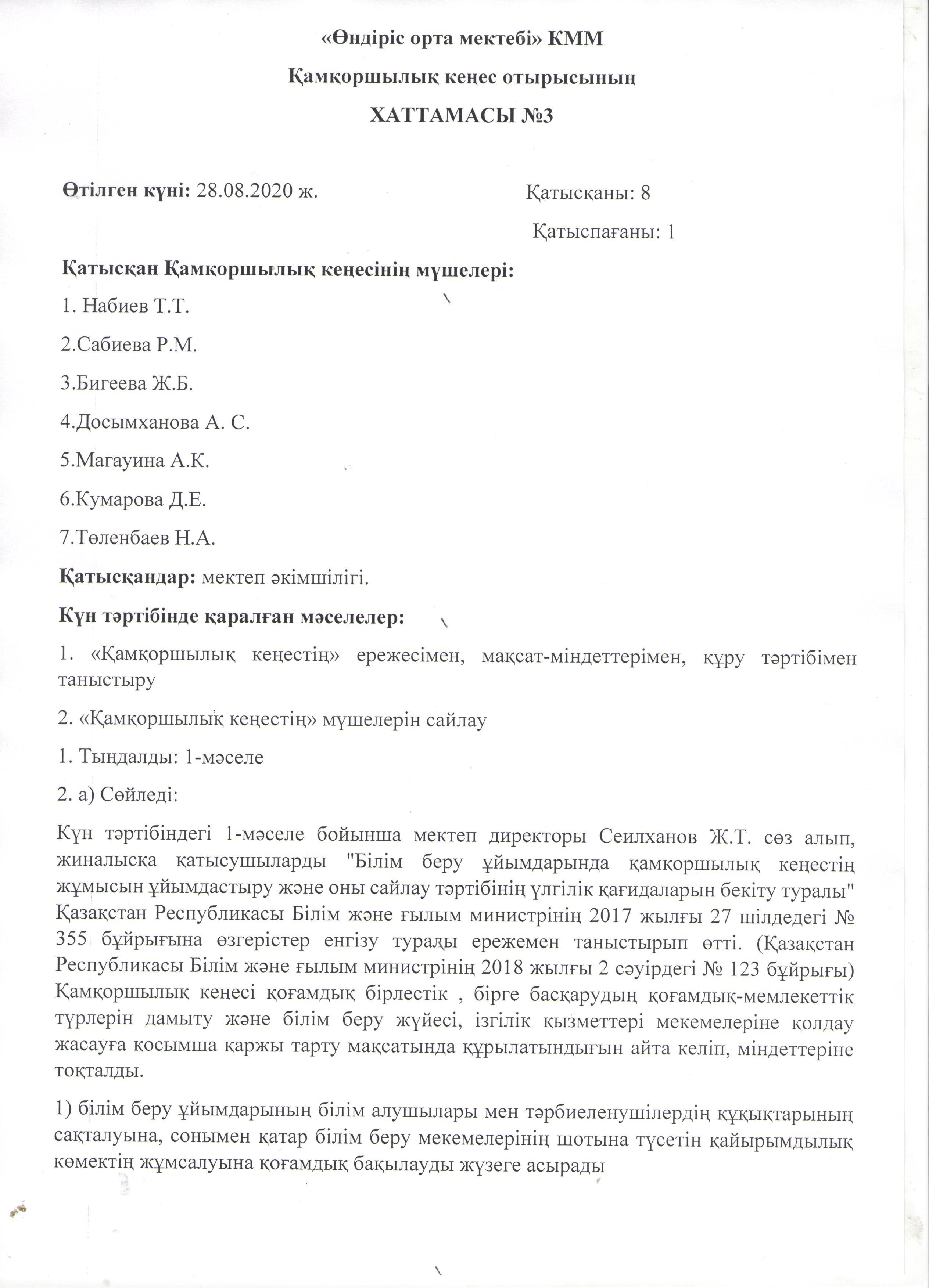 Қамқоршылық кеңес отырысының хаттамасы №3