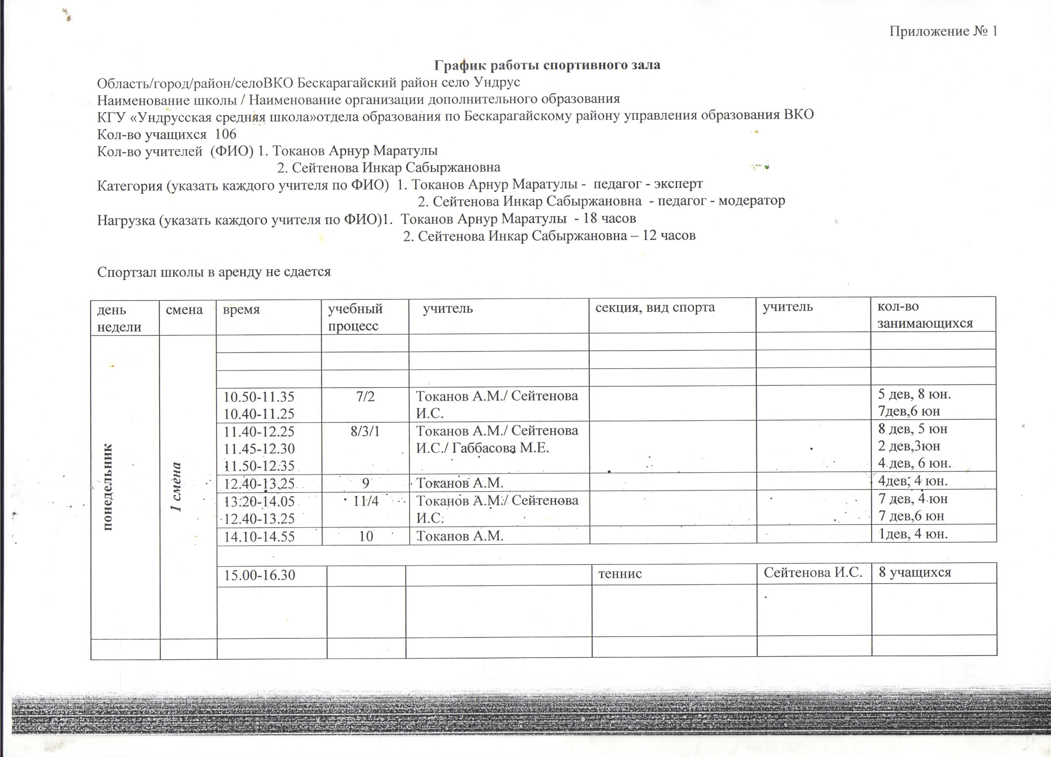 » » Спортзалдың жұмыс режимі 2021-2022 оқу жылы (қосымша№1)