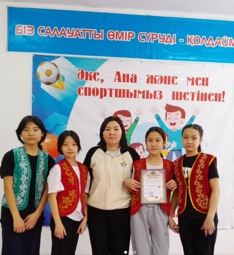 Команда құрамы:6- сынып оқушылары - Бахтиярова Г., Жеңіс А., Оралғазы А., Сағидуллаева С. Жаттықтырушы: Сейтенова И.С.