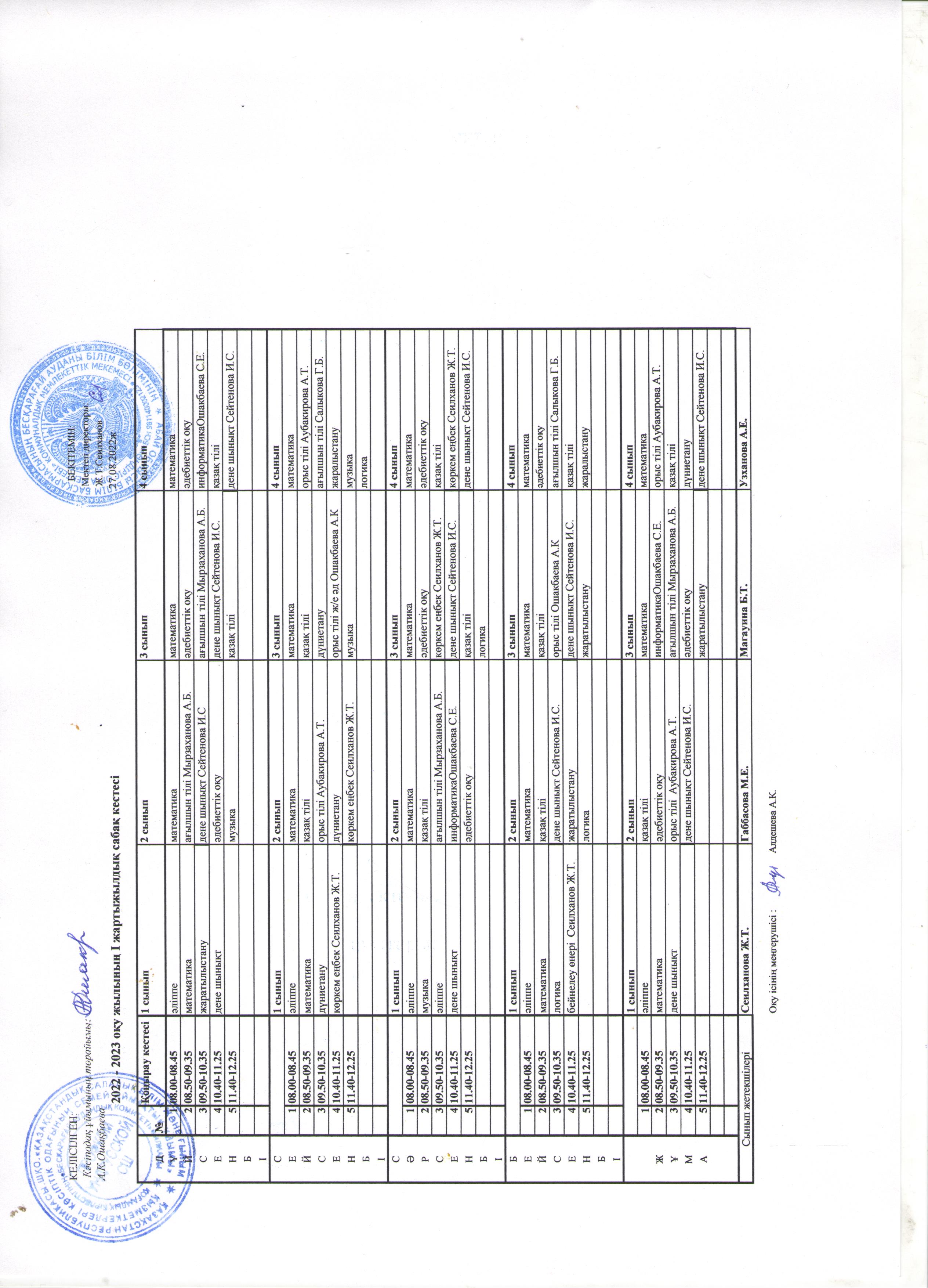 01 сентябрь 2022 0 1 2 3 4 5 2022-2023 оқу жылының бастауыш сыныпқа арналған сабақ кестесі І жарты жылдық