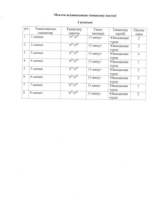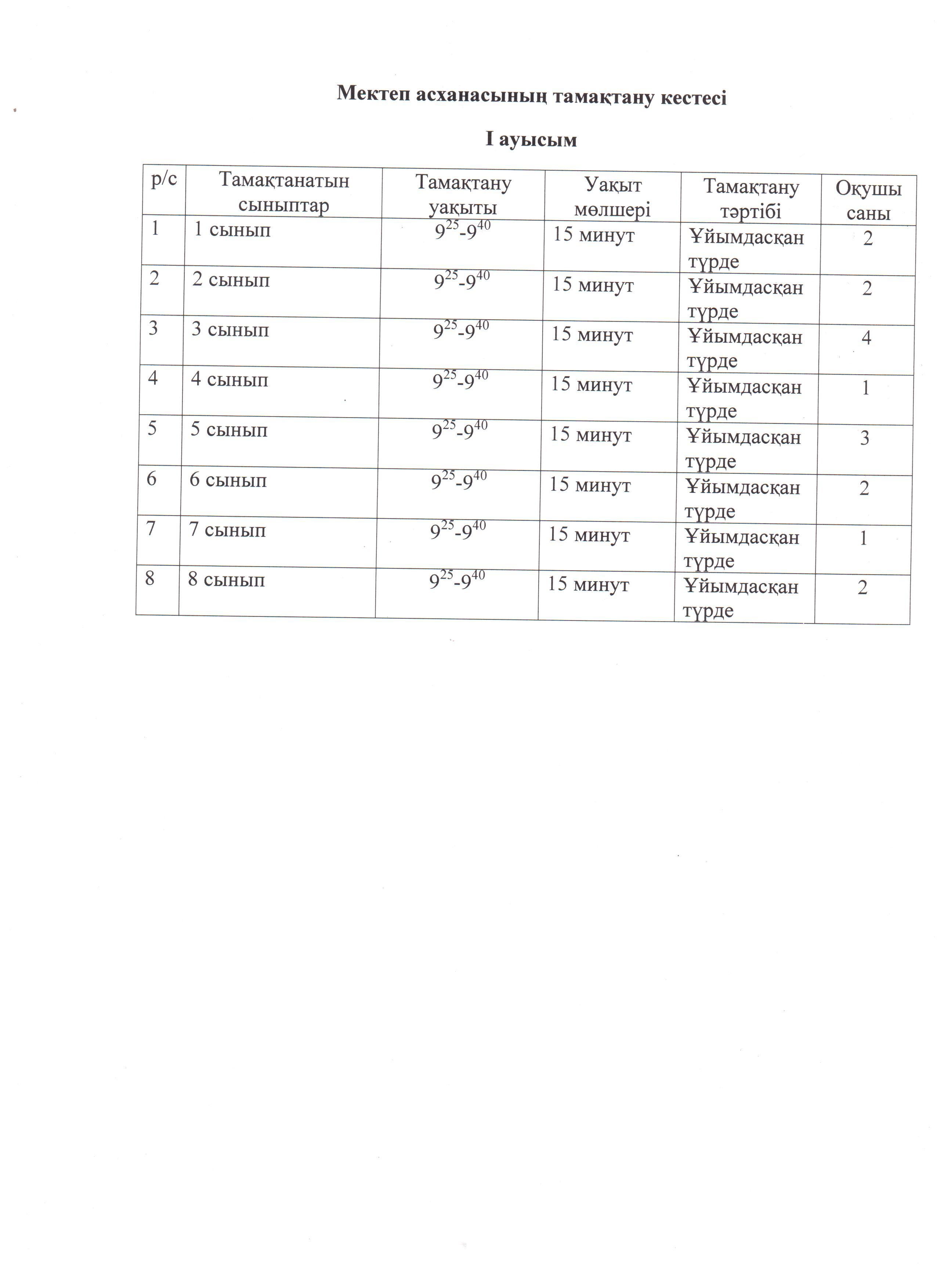 Мектеп асханасының тамақтану кестесі » Өндіріс ОМ