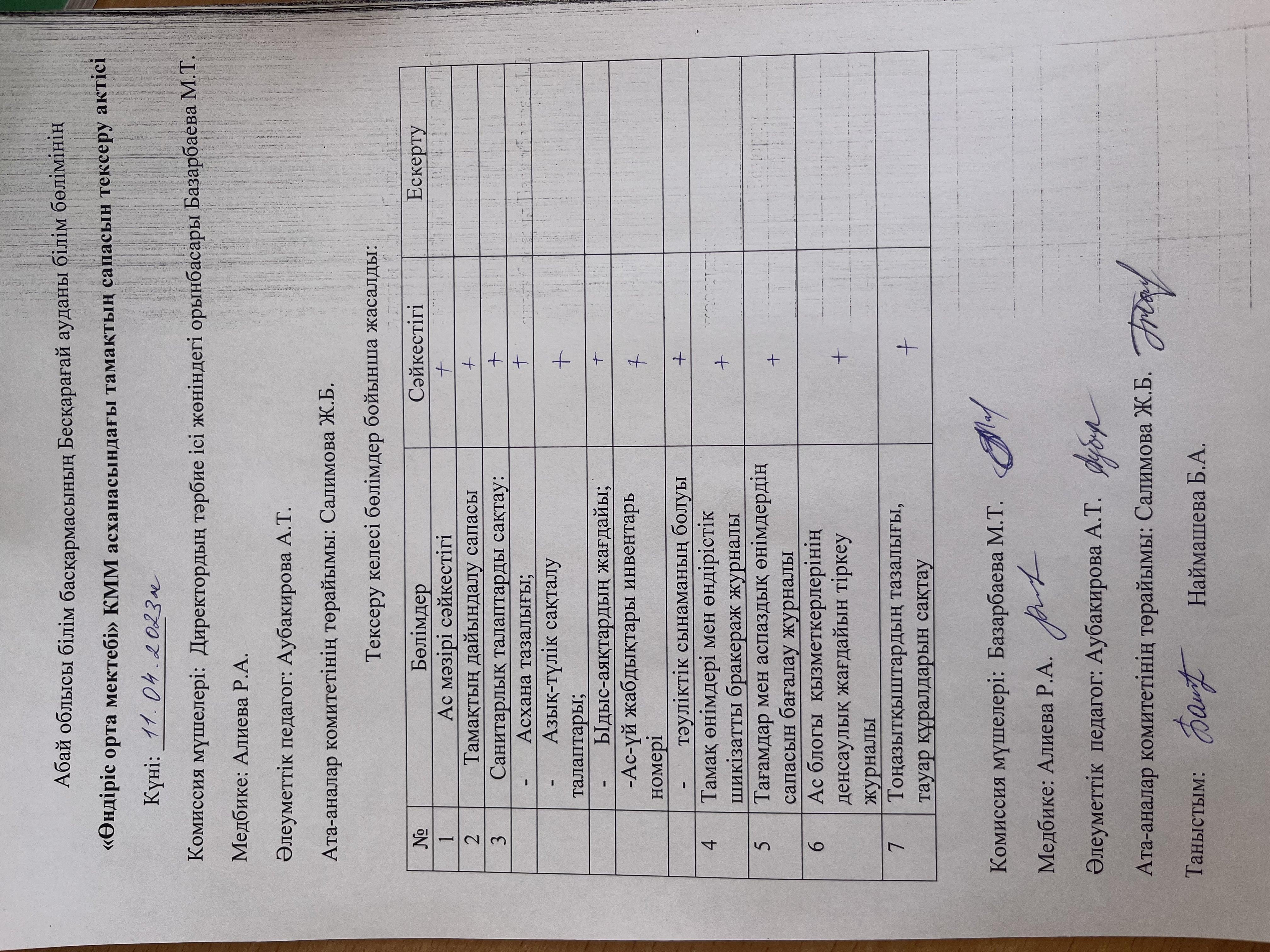 Қабылдау бөлімі :