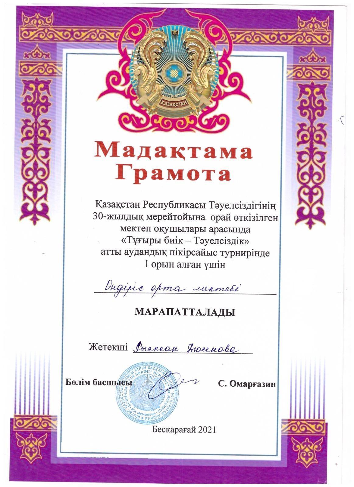 "Ұшқыр ой алаңы" дебат ұйымының жетістіктері » Өндіріс ОМ